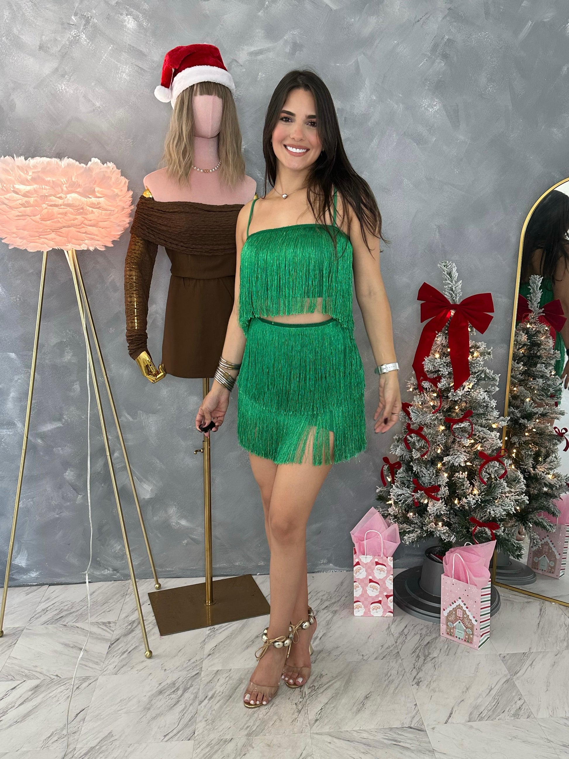 Set de dos piezas, no tiene spandex en cintura la falda ni el top en la parte de arriba. Mangillos tienen ajuste. No corre corto es un largo regular. Si deseas le puedes subir un size.